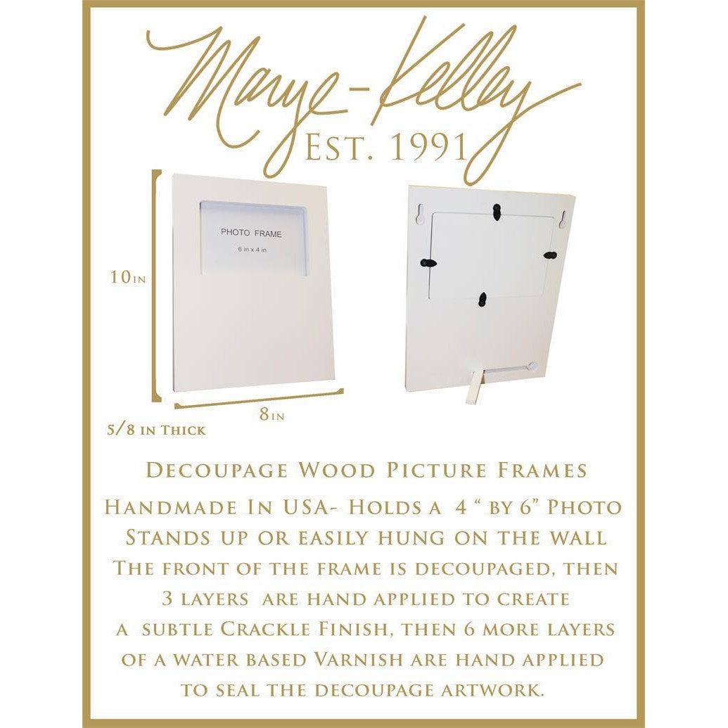 Put your photos on display with these vibrant decoupaged photo frames! Add a touch of color to your desk or shelf while incorporating the memories with friends and family into your home décor. Dimensions: 8" x 10" frame, fits a 6" x 4" photograph Decoupaged front with solid white back Retractable kickstand support allows for shelf placement or hanging Made-to-order