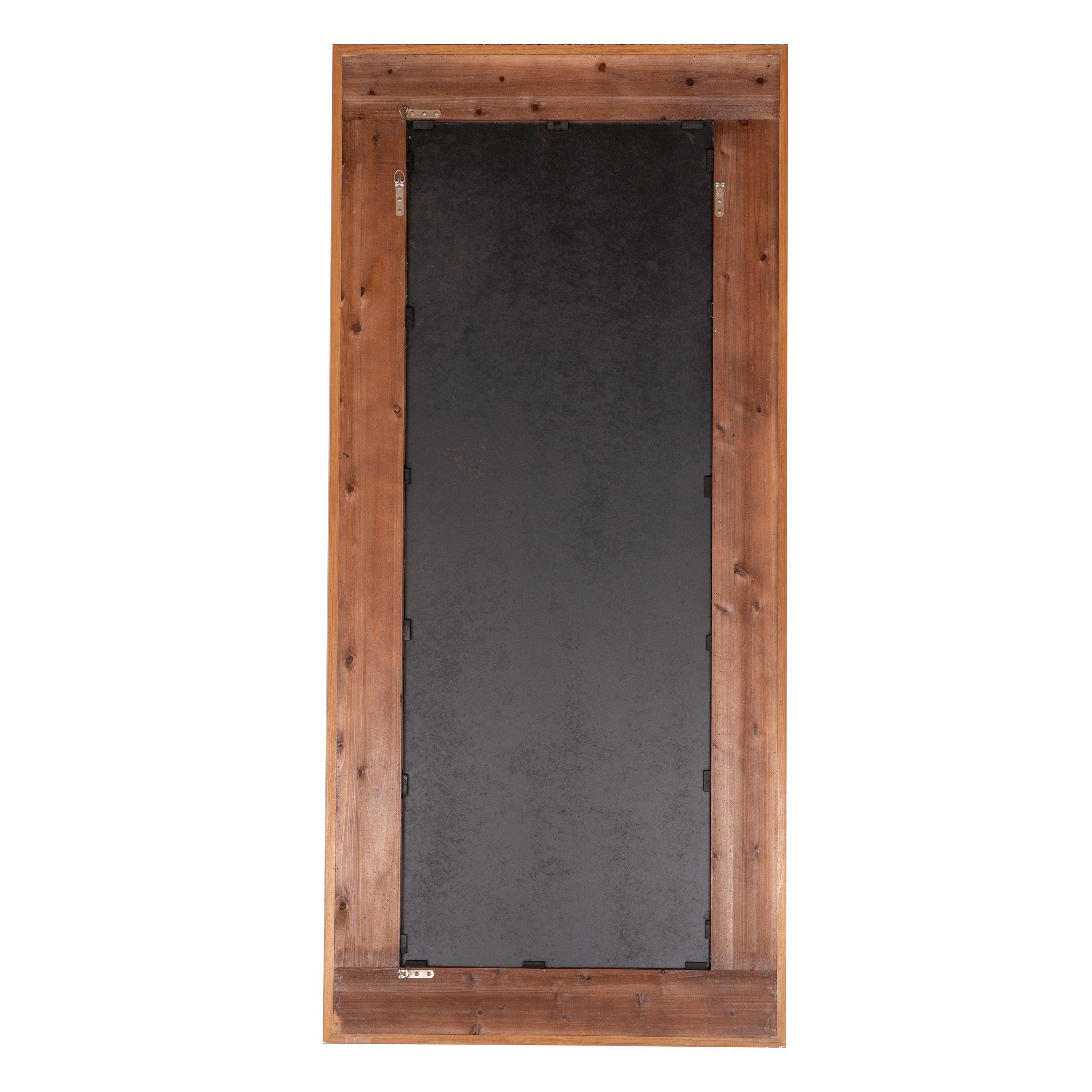 Crafted from solid wood with a natural wood finish, this full length floor mirror has beveled glass with MDF backing and it comes with D-ring hardware for optional wall mount installation.