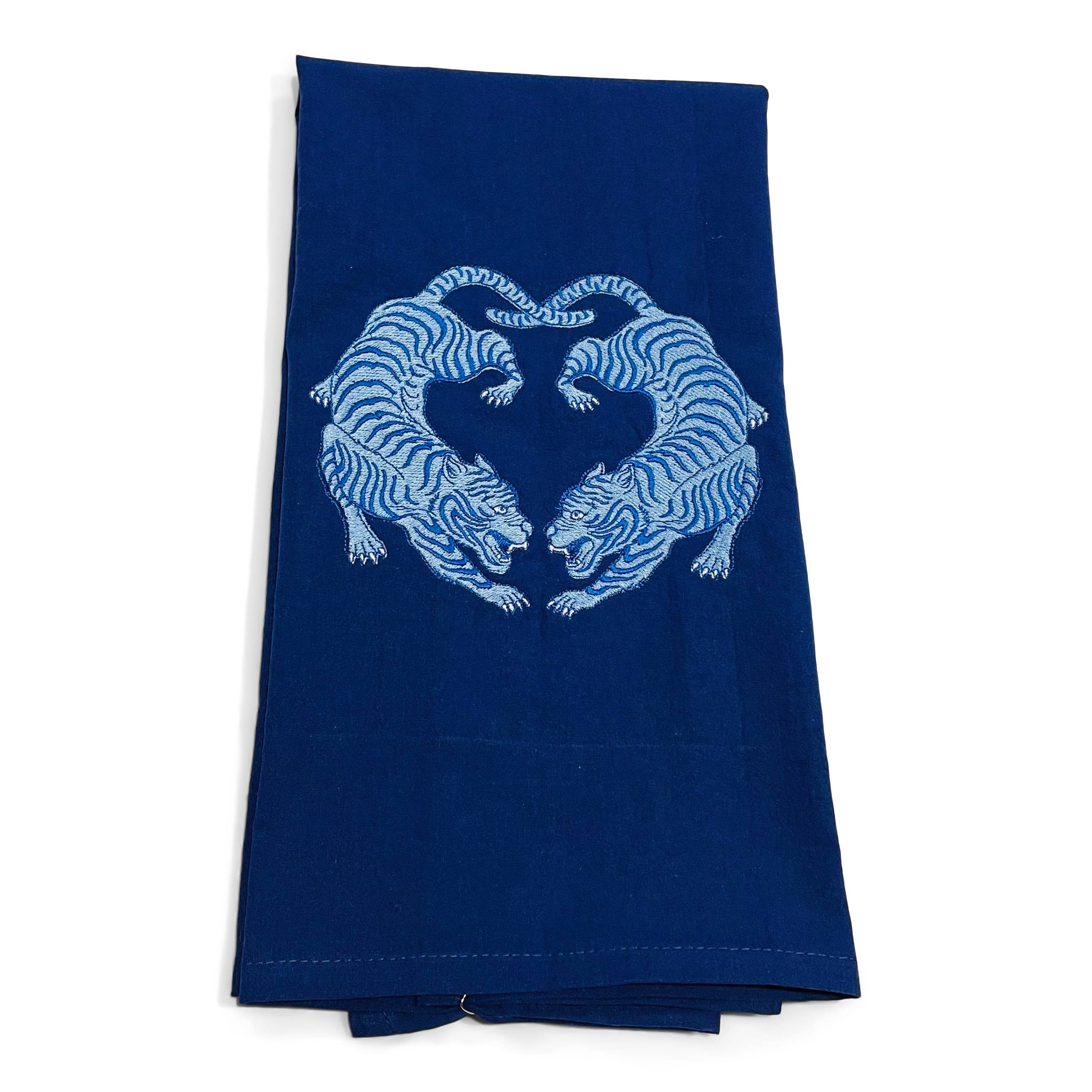 Kitchen Towel - Chinoiserie Twin Tigers in Blue